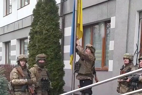 У Бучі в Київській області ЗСУ підняли український прапор Тарас Кайдан · 3.3.2022 · 12:48 ВійнаКиївщина