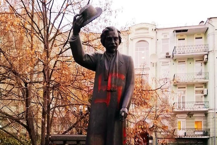 У центрі Києва намалювали свастики на пам’ятнику Шолому-Алейхему Стасюк Ірина · 25.11.2019 · 12:28 євреїантисемітизмвандалізмПам'ятникСинагога